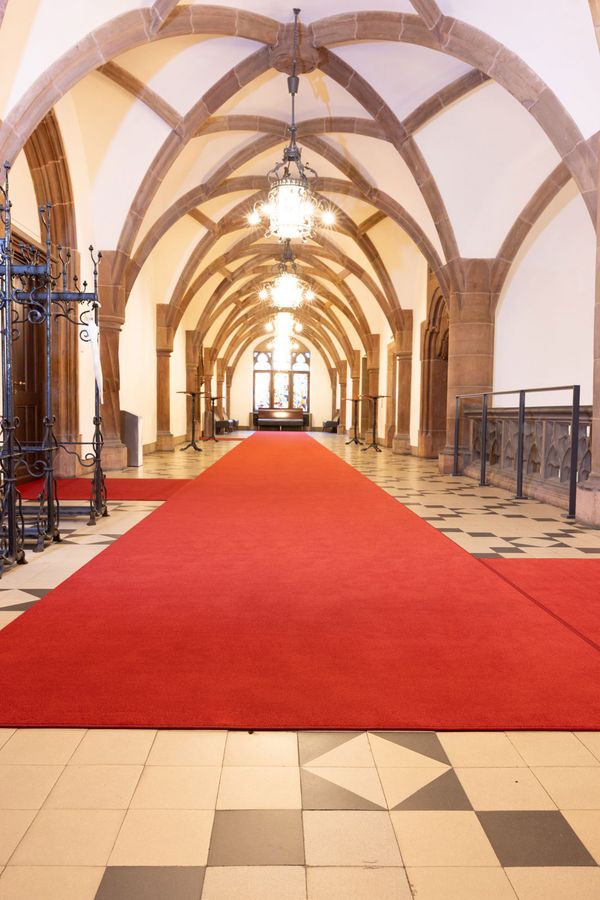 in the corridors and stairways of the centrally located town hall in Saarbrücken